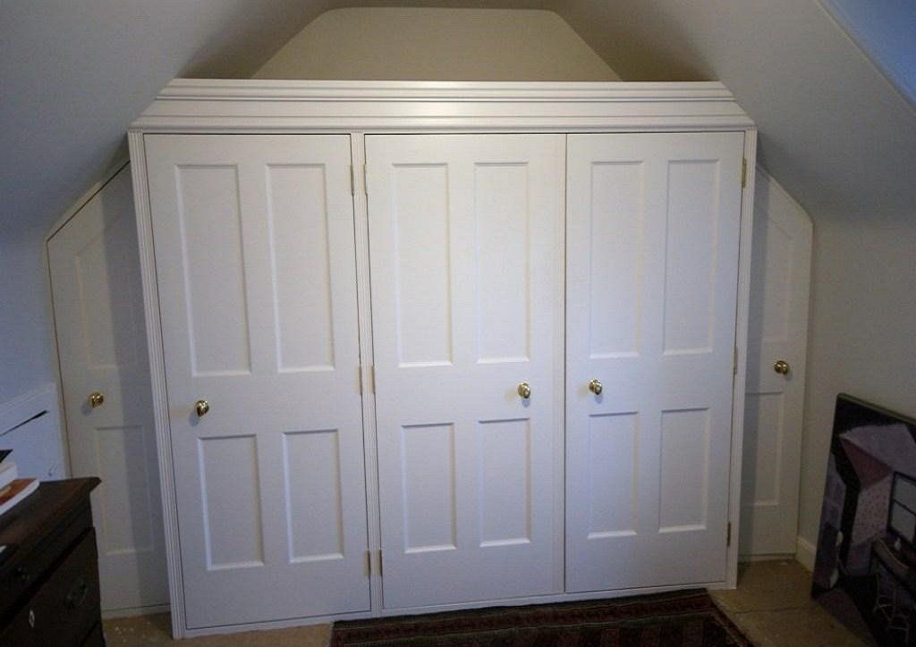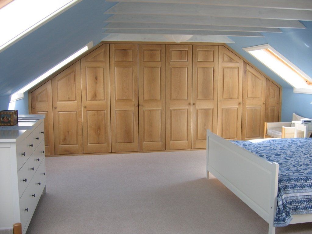 Above shows two different examples of fitted bedroom oak wardrobes, within different properties, which consist of pitched roof areas.